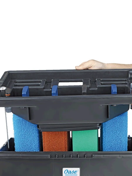 Der BioSmart 18000 zeichnet sich durch eine hohe Verfügbarkeit von Sauerstoff und großer Wasserdurchlaufmenge aus. Die unterschiedlichen Filterschwämme bieten das nötige Volumen und eine große Oberfläche für die optimale Entwicklung der Filterbiologie. Im Filter ist ein Thermometer für das genaue bestimmen der Wassertemperatur integriert.