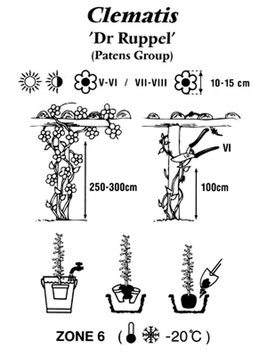 Clematis ‚Dr. Ruppel‘ ist eine ansprechend blĂŒhende neue Clematis-ZĂŒchtung.