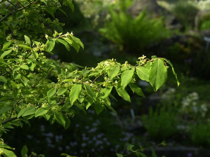 Besonderes, Pflege und Verwendung: Der ursprĂŒnglich aus den asiatischen Gebieten Japan, Zentralchina und der Mandschurei kommende Zierstrauch wĂ€chst dort in lichten WĂ€ldern und GebĂŒschen und ist völlig winterhart. Er ist sehr anspruchslos an seinen Standort und wĂ€chst auch noch gut in schattigeren Lagen, in denen seine BlĂ€tter im Herbst allerdings etwas weniger fĂ€rben.