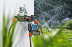 Der Wasserdurchfluss lĂ€sst sich separat fĂŒr den jeweiligen Ausgang stufenlos regulieren und absperren. An den 4-Wege-Verteiler können zwei GARDENA BewĂ€sserungscomputer oder BewĂ€sserungsuhren angebracht werden.