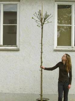| Lieferqualität: | Junger Hochstamm mit einer Stammhöhe von ca. 2,00 m im Container oder mit Ballen. Mit einer auf dem Stamm aufsitzenden kleinen Krone, die im Lieferzustand fachgerecht zurück geschnitten ist, um eine gute Kronenentwicklung nach der Verpflanzung zu gewährleisten. Stammhöhe: ca. 2,00 m |