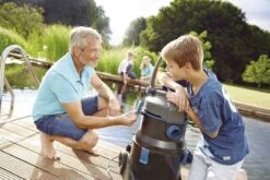 Der Teich- und Poolsauger Pondovac 5 überzeugt durch sein unterbrechungsfreies Saugen dank der inegrierten Entleerungspumpe bei Saugtiefen bis zu 2,5 m. Durch das optional erhältliche Zubehör wird der Pondovac 5 zu einem unerlässlichen Teichhelfer für jeden Teichfreund.