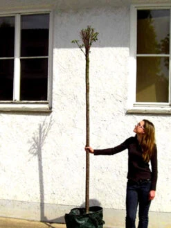 Bild 4: durchschnittliche Lieferqualität nach fachgerechtem Rückschnitt für eine gute Kronenentwicklung nach der Verpflanzung. Der Umfang der Belaubung hängt vom Lieferzeitpunkt ab.