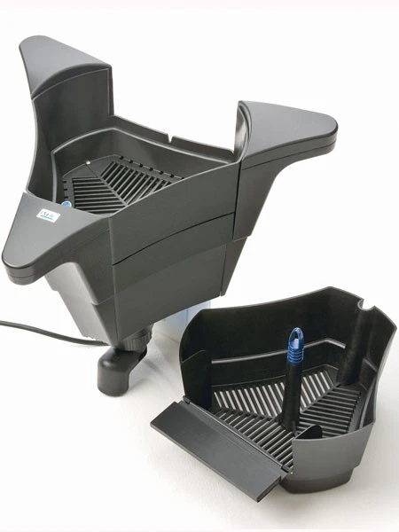 Mit der leistungsstarken Pumpe werden Teichoberflächen von bis zu 50m² von Laub und anderem Nährstoffeintrag befreit. Der Skimmerkorb lässt sich schnell und unkompliziert entleeren.