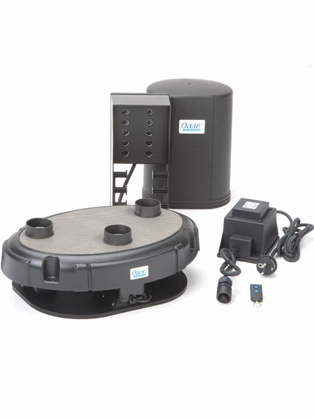 Es verfügt über 3 individuell angesteuerte Düsen, deren Fontänenhöhe und Geschwindigkeit durch fest eingestellte Programme per mitgelieferter Fernbedienung (max. 80 m Reichweite) wählbar sind.