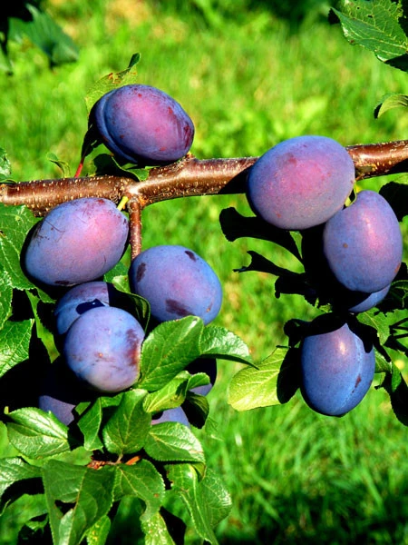 | Frucht: | Goldgelbes Fruchtfleisch, dunkelblaue Frucht mit mittlerer bis starker Bereifung. Gut Steinlösend. Große Früchte mit einem Durchmesser zwischen 50 – 60 mm. Sehr süßer und doch ausgeglichener Geschmack. |